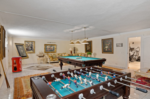 A great, recently renovated villa with a perfect fusion between contemporary design and Andalusian style. Located in the sought after residential area of La Cerquilla. South facing with views to La Concha. Private and quiet, nearby all amenities and the golf clubs of Las Brisas and Los Naranjos. Main floor: Entrance hallway, large living area with fireplace and high ceilings, dining area with an open plan fully fitted kitchen with Siemens and Neff appliances and an entertainment bar area. Four guestbedrooms ensuite, office, guest toilet, laundry area. Access to the covered and open terraces from the living areas into the garden and pool area. First floor: Master bedroom ensuite with dressing area with direct access to the terrace. Lower floor: Entertainment area, bodega, cinema room, gym, garage for 6 cars and storage. Separate fully fitted guest or staff apartment. Beautiful mature gardens, outdoor chill area with BBQ and a nice sized heated pool. The furniture is negotiable.