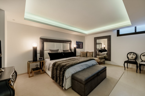 Welcome to Los Olivos 5, a modern masterpiece nestled in the heart of Nueva Andalucía’s prestigious Golf Valley. Offering breathtaking panoramic views, this exceptional villa enjoys a prime location, perfectly blending sophistication with convenience. The property’s striking design is complemented by a stunning infinity pool, expansive terraces with chill-out areas, and alfresco dining spaces, providing the ultimate setting for outdoor living and entertaining. Inside, the villa showcases a contemporary yet soothing aesthetic, with an open-plan layout that flows seamlessly between the living areas. High ceilings and glass sliding doors enhance the sense of space, inviting abundant natural light and creating a seamless connection to the outdoors. The sleek, modern kitchen is equipped with top-of-the-line appliances, making it a dream for both casual meals and fine dining. With seven elegant bedrooms, including a luxurious master suite featuring direct terrace access and an exquisite master bathroom, every corner of the home exudes comfort and style. For those seeking entertainment and wellness, the villa offers a dedicated level with a wine bodega and a fully equipped home gym. Whether relaxing poolside, hosting guests, or enjoying the tranquillity of this exclusive enclave, Los Olivos 5 is a sanctuary of modern luxury in Marbella’s most sought-after neighbourhood.