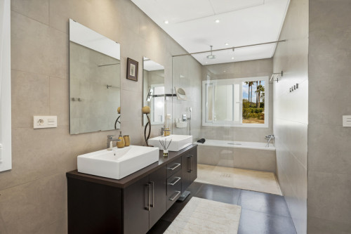 Contemporary Villa with Panoramic Views in La Quinta This stunning modern villa offers open views over the Golf Valley, La Concha Mountain, and the Mediterranean Sea, perfectly positioned in a quiet and sought-after area of La Quinta, just a 3-minute walk from the prestigious Westin La Quinta Hotel. The villa combines elegant architecture with functionality and comfort, featuring bright, spacious interiors and beautifully designed outdoor spaces. Property Layout Ground Floor: An impressive entrance hall with double-height ceilings welcomes you into the home, leading to a modern fully fitted kitchen equipped with premium appliances, a bright living area with fireplace, and a guest bedroom with an en-suite bathroom. Expansive terraces surround the entire house, seamlessly connecting indoor and outdoor living. First Floor: Two elegant bedrooms, each with its own en-suite bathroom and direct access to a private terrace, offering wonderful views and plenty of natural light. Lower Level (-1): An additional bedroom with bathroom, a large utility area with laundry and storage room, plus a spacious multipurpose room ideal for a home cinema, gym, office, or wellness area. This level also features a garage for 3–4 cars, with ample space for bicycles or motorbikes. The villa is tastefully decorated and filled with natural light throughout. The double-height ceilings in the entrance hall and dining area create an enhanced sense of space and elegance. A spectacular rooftop terrace offers breathtaking panoramic views—perfect for relaxation or entertaining. The outdoor areas are beautifully designed and include generous terraces, a swimming pool, and a spacious landscaped garden, providing the perfect balance between comfort, privacy, and style. Ideally located just a few minutes’ drive from Puerto Banús, this exceptional property enjoys proximity to five renowned golf courses, fine restaurants, and boutique shops, making it the perfect choice for those seeking a luxurious Mediterranean lifestyle. Airport in Malaga just 35 min drive, center of Marbella 15 min drive.
