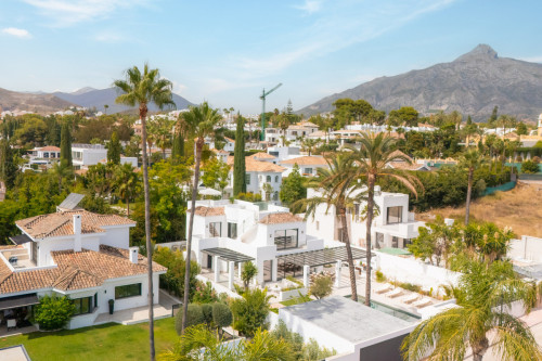 This home is a modern six bedroom luxury villa for sale in the Golf Valley of Marbella. The home offers 600 m² of space on an 820 m² plot with 125 m² of terraces. The villa sits minutes from Aloha Golf Los Naranjos and Las Brisas Golf Club and it offers fast access to shops restaurants and Puerto Banús which makes it ideal for buyers who want privacy and convenience. The villa includes six ensuite bedrooms and a Swedish kitchen with Miele appliances. It also offers full underfloor heating with Daikin AC and Airzone plus a private spa with a Finnish sauna a hammam and a large bathtub. A cinema room adds extra comfort and two guest toilets and two private parking spaces complete the home. The outdoor area is designed for luxury living. The pool terrace enjoys sun all day and connects to a Sonos sound system with full Wi Fi coverage. A rooftop terrace offers mountain and valley views from sunrise to sunset which makes this home a strong choice for buyers seeking a modern turn key villa in Marbella.