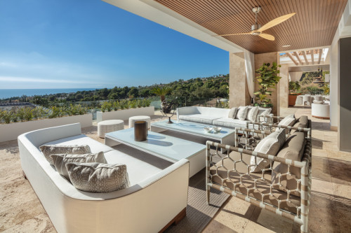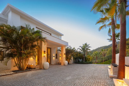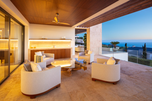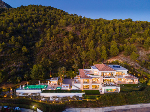 Located in the most prestigious gated community on the Costa del Sol: Cascada de Camoján, this luxurious resort-style villa is nestled in the foothills of the Sierra Blanca mountains. This pristine mansion offers the best of modern architecture infused with Mediterranean touches. Built and designed to the highest quality standards Villa Olympus will take your breath away. The villa welcomes you into an impressive entrance hall, with a magnificent high ceiling, double staircase and extraordinary architectural elements. The entrance hall leads to a stunning living area with breathtaking views of the Mediterranean Sea and Africa. The living room is furnished and decorated to perfection, leading to an additional TV area on the left and a state-of-the-art kitchen with Piano Bar on the right. The living room and kitchen are directly connected to expansive terraces enjoying one of the most beautiful sea views in Marbella. Every bedroom of Olympus is a luxurious and elegant space with exquisite features offering optimal comfort. The lower level of the villa is a state-of-the-art SPA, with a heated indoor pool, hammam, sauna, gym, cinema room, additional bedrooms and plenty of entertainment space. Olympus is truly the most exceptional villa currently on the market in Marbella.