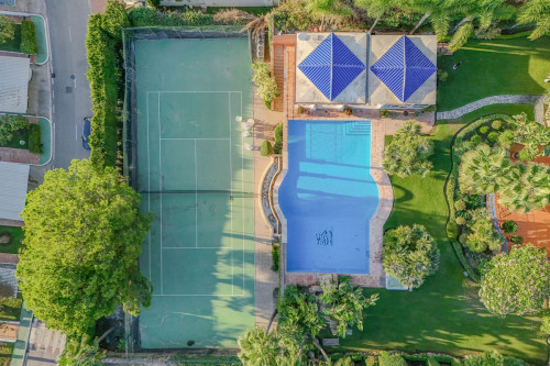 Villa Herencia stands as a magnificent masterpiece of classic architecture, embodying timeless elegance and exceptional craftsmanship. Gracefully positioned in Nueva Andalucía- on one of Marbella’s most coveted addresses, this west-facing landmark residence sits on a 3,400 m² plot and captivates with its grand, refined appearance. Its 1,727 m² of interiors showcase soaring double-height ceilings, intricate woodwork, and hand-finished marble, creating spaces of enduring beauty and sophisticated character. From the moment you pass through the grand gates, a sense of grandeur unfolds as artistry, privacy, and serenity blend harmoniously. Inside, bespoke detailing and architectural symmetry set the tone for classic luxury throughout. The residence features six spacious bedroom suites, each with its own en-suite bathroom, plus an additional bathroom and five guest toilets, ideal for family living and large-scale hosting. Six further rooms provide dedicated spaces for dining, lounging, office, games, and entertainment. All three floors are connected by an elevator, and underfloor heating throughout, along with individual air-conditioning units in every room, ensures absolute comfort. The primary suite serves as a private retreat, complete with a large terrace offering panoramic views across the valley, the landscaped gardens, and glimpses of the Mediterranean Sea. Living areas flow seamlessly into the lush gardens, complemented by more than 480 m² of terraces that create a perfect indoor-outdoor lifestyle. The grounds include a large swimming pool and a private tennis court, enhancing the estate’s resort-style environment under the Mediterranean sun. A fully equipped outdoor kitchen adds convenience for dining with family and friends. On the basement level, a dedicated wellness spa awaits, featuring an indoor heated pool, gym, sauna, and jacuzzi - fulfilling all leisure and fitness needs. A self-contained guest or staff studio further enhances the property’s versatility. The garage, accommodating up to 9 cars, offers both practicality and prestige, ideal for a collector. Located in an exclusive area of Nueva Andalucía, the property combines tranquility with exceptional accessibility. Within walking distance of Aloha , Centro Plaza, and Puerto Banús, and Las Brisas, Aloha Golf, and Los Naranjos, three of Marbella’s championship golf courses - are only minutes away. Nearby, you’ll find fine dining, charming cafés, and esteemed international schools including Aloha College and Swans International. Beyond its architectural and lifestyle appeal, the estate represents a rare investment opportunity, combining scale, location, and pedigree in one of Europe’s most desirable real estate markets.