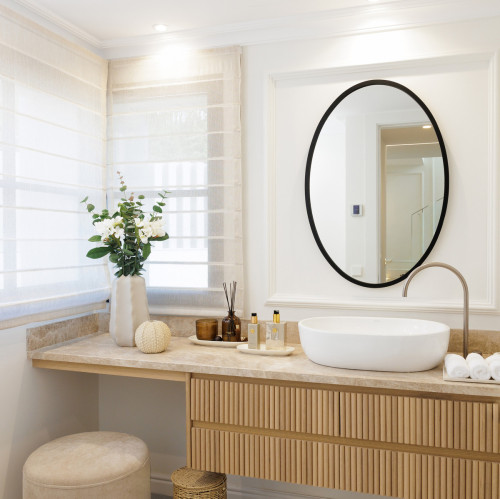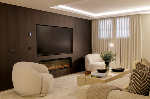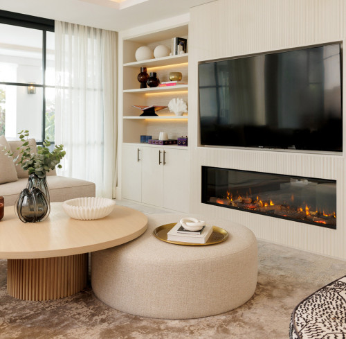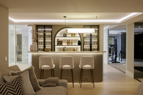 Villa Agata presents a modern Mediterranean home in La Quinta with incredible sea views. Set on a 1,109 m² plot and newly renovated throughout, the villa showcases striking architecture paired with refined interiors by Soledad Merchant. The main living area is a bright, open space with floor-to-ceiling glass, custom shelving, and a smooth transition to the outdoor areas. The adjacent dining zone and lounge are arranged for practical everyday use while still offering an elegant setting for hosting. The kitchen is a key highlight of the property. Designed with clean lines and premium materials, it includes a large central island, built-in appliances, and abundant storage concealed within tailored cabinetry. The layout encourages interaction, with direct views toward the living room and seamless access to the exterior terraces and pool. This combination of layout and design makes the main floor one of the home’s strongest assets. The property offers five well-appointed bedrooms, including a private primary suite on the upper floor with direct terrace access. Each room follows the same design standard—neutral tones, bespoke carpentry, and thoughtful lighting. The upper level also opens to extensive outdoor areas that capture views across the coastline. The entertainment level adds strong lifestyle value, featuring an entertainment room, home gym, sauna, and a climate-controlled wine bodega. Outdoors, the villa offers multiple seating and dining zones positioned around the landscaped garden and the impressive private pool. Located minutes from golf courses, international schools, and the amenities of Nueva Andalucía and Marbella, Villa Agata stands out as one of the most complete modern homes in La Quinta.