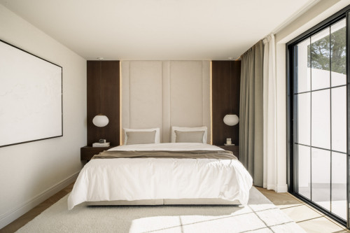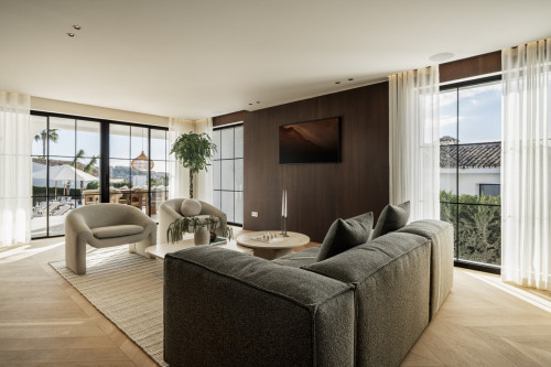 Positioned in one of Marbella’s most sought-after areas, the villa enjoys a privileged location with beautiful golf and sea views, easy access to amenities, and total privacy. Inside, the home is defined by an elegant selection of materials, including Chevron wooden flooring that brings warmth and sophistication to every space. The Danespan kitchen combines clean design with functionality, creating a welcoming focal point for daily living and entertaining. The villa offers five spacious bedrooms, thoughtfully distributed to ensure comfort for family and guests. The wellness area features an indoor pool, sauna, and steam room, creating a private spa experience within the home. Large windows establish a seamless indoor–outdoor connection, opening to generous terraces and a very spacious garden designed for relaxation and social gatherings. The outdoor areas provide multiple spaces for dining, lounging, and enjoying the tranquil surroundings. Equipped with a Lutron home automation system and water-based underfloor heating throughout, the property delivers modern convenience and year-round comfort. With its combination of elegant design, sweeping views, and an exceptional location, Auriga 13 provides a sanctuary of luxury and tranquility in the heart of Marbella.