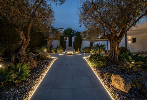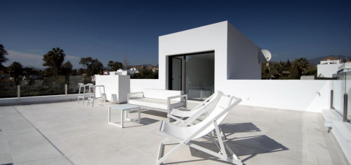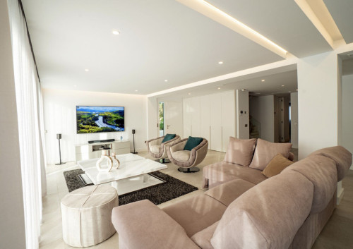 Stunning Luxury Villa for rent in Nueva Andalucia. Exclusive villa located in the heart of Nueva Andalucia, renovated with luxury qualities. Privileged location, a short distance from Puerto Banus and the most prestigious golf courses, international schools, sports facilities and services. The house consists of 4 plus 1 bedrooms and 5 bathrooms. Upper floor with great views of the La Concha mountain and residential area, with a large solarium terrace. Open and minimalist spaces abound, along with high security measures, in addition to a beautiful lake with direct access from the garden, and a spacious private pool area, where you can enjoy the tranquility that the area offers.