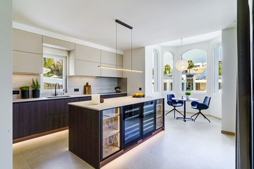 This elegant contemporary-style villa, recently renovated with exquisite taste, offers the perfect blend of design, comfort, and a prime location. The property features 6 spacious double bedrooms distributed across three levels: the master suite is located on the upper floor, another en-suite bedroom on the main level, and four additional bedrooms on the lower level, providing an ideal balance of privacy and functionality. It also includes 4 bathrooms and 1 guest toilet. Designed for both indoor and outdoor enjoyment, the villa boasts a large private swimming pool and beautifully landscaped gardens, including unique leisure areas for activities such as croquet and mini golf, creating a perfect setting for relaxation and entertainment. Ideally located just 400 meters from Los Naranjos Golf Club and 900 meters from La Quinta Golf Club, the property enjoys an exceptional setting. The beach is less than 2 kilometers away. With accommodation for up to 12 guests, this villa is ideal for those seeking an exclusive stay in a refined and peaceful environment.