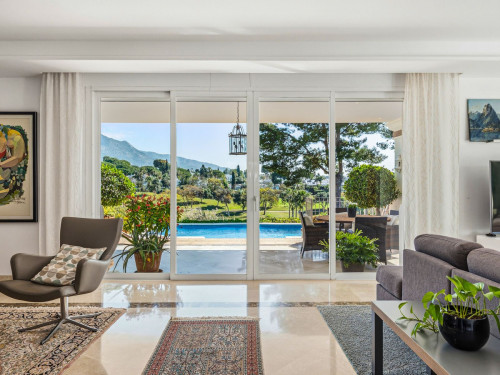 Elegant 7-Bedroom Frontline Golf Villa with Iconic Mountain Views – Nueva Andalucía Introducing an exceptional Andalusian villa set in a prime frontline position overlooking Aloha Golf Club, where breathtaking panoramic views extend across the fairways to the iconic La Concha. Tucked away in a peaceful cul-de-sac in Nueva Andalucía, this remarkable residence offers the perfect balance of privacy and convenience, just minutes from the vibrant marina of Puerto Banús and the lifestyle amenities of Aloha Gardens. ⸻ A Home Designed for Effortless Living The villa’s layout has been thoughtfully designed to maximise comfort, natural light, and flow. The main living spaces—kitchen, dining area, and lounge—are seamlessly interconnected, each opening directly onto expansive terraces and outdoor entertaining areas. Large openings flood the interiors with sunlight, creating a bright and inviting atmosphere throughout. ⸻ Interior Highlights • Seven spacious en-suite bedrooms, each offering comfort and privacy • Lower-level bedrooms with direct access to the garden and swimming pool • Timeless Andalusian architecture combined with high-quality finishes • Open-plan living ideal for both everyday life and entertaining • Bright, airy interiors with abundant natural light ⸻ Outdoor Living at Its Finest Set within beautifully landscaped gardens, the villa’s exterior spaces are designed for the ultimate Mediterranean lifestyle: • Expansive sun-drenched terraces • Multiple outdoor lounging and entertaining areas • Private swimming pool with panoramic golf and mountain views ⸻ Why This Property Stands Out • Prime frontline golf position in Marbella’s prestigious Golf Valley • Stunning panoramic views of both the golf course and mountains • Exceptional layout ideal for families or hosting guests • Perfect as a full-time residence or luxury holiday home ⸻ This is a rare opportunity to acquire a standout home in one of Marbella’s most sought-after locations, where elegance, privacy, and lifestyle come together effortlessly.