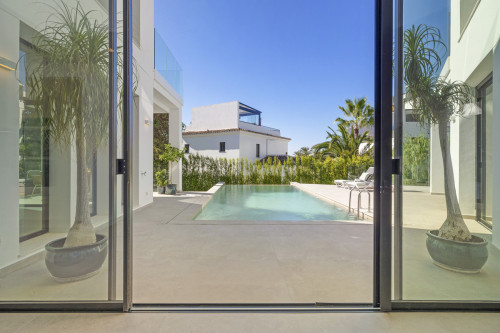 Steps from the sea, built for modern living, this stunning contemporary villa is located in the sought-after urbanisation of Marbesa, just a couple of minutes’ walk from the beach. Built to the highest standards, the design elegantly wraps around the private infinity pool, creating a seamless flow between indoor and outdoor living. The villa boasts a spacious solarium offering breathtaking 180° views of the sea and coastline. Inside, you’ll find five generous en-suite bedrooms finished with highest quality material. A sleek modern kitchen come fully equipped, and an open-plan dining area perfect for entertaining. The living areas have been designed to maximize natural light. Expansive terraces provide multiple spaces for relaxation and gatherings throughout the day. At the basement level, there is a stylish gaming and entertainment area, ideal for family fun or hosting guests. Additional features include a private parking area for at least two cars. Marbesa is a well-run urbanisation with international and local residents. A charming and tranquil urbanisation to the east of Marbella, is renowned for its proximity to some of the area’s most famous beach clubs and restaurants as well as very near to Elviria with its shops and restaurants, weekly markets. Perfect for the easy living.