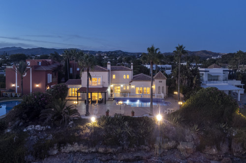 <strong>Location, Location, Location!</strong> This is a rare opportunity to acquire an <strong>absolute frontline beach villa</strong> in the highly sought-after Marbesa area of Marbella — with the Mediterranean literally at the edge of your garden. Properties of this calibre and location seldom come to market, and with its <strong>wide sea frontage</strong> and uninterrupted views, this home is truly special. From the moment you arrive, the property impresses with its <strong>long landscaped driveway</strong> leading to the entrance. Inside, you’ll find <strong>five spacious bedrooms</strong> (four en-suite), a <strong>split-level lounge and dining area</strong>, a <strong>separate kitchen</strong> and utility room and generous <strong>terraces and patios</strong> surrounding a large swimming pool. There is also a large ancillary lounge overlooking the pool giving you a separate lounge for children or guests to make use of. The <strong>master suite</strong>, occupying the entire first floor, is exceptionally large, offering panoramic sea views, ample wardrobe space, and a luxurious en-suite bathroom. A <strong>separate double garage</strong> and beautifully <strong>floodlit gardens</strong> complete the home. The villa has been lovingly maintained by the same family for over 20 years and remains in <strong>excellent condition and fully liveable</strong> as it stands. However, with a touch of modern updating to incorporate today’s latest features, it has the potential to become one of the <strong>most spectacular residences in all of Marbella</strong>. Beyond the villa itself, the location is second to none. Marbesa is one of Marbella’s most desirable beachside communities, with a relaxed charm and easy walking access to luxury beach clubs and restaurants, including the <strong>world-famous Nikki Beach</strong> and the <strong>legendary “Beach House". The beautiful quaint port of Cabopino is also a short walk along the golden sandy beach.</strong> With its unique setting, expansive sea frontage, and endless potential, this is a property that must be seen to be fully appreciated. <strong>Viewing is highly recommended.</strong>